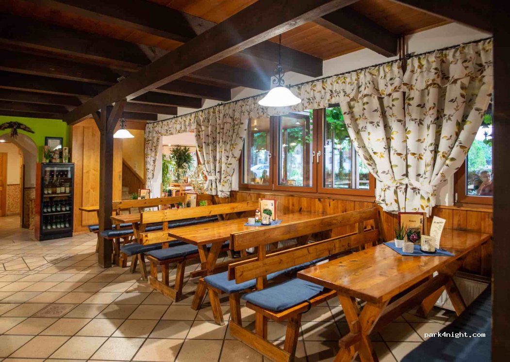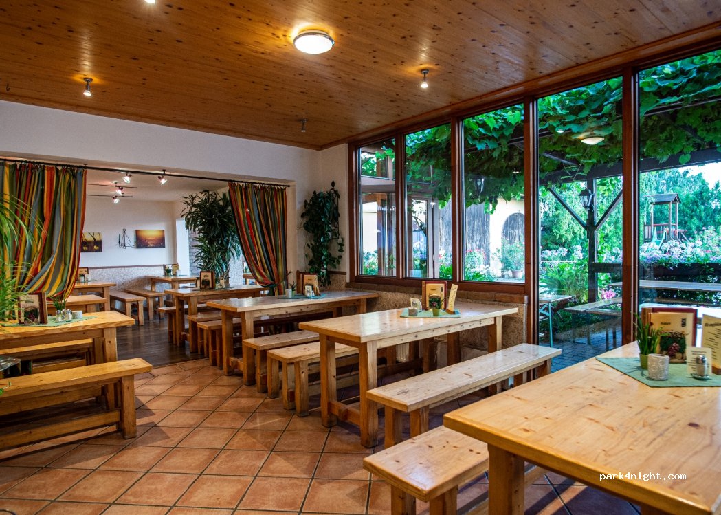 The complex includes sanitary facilities, showers, a children’s playground, a fire pit, and free Wi-Fi.