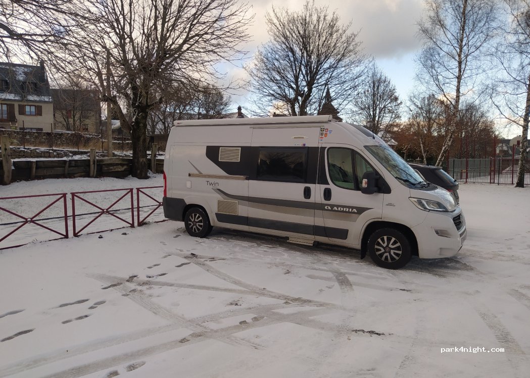 malgré l'interdiction qui semble être de mise sur l'ensemble de la commune de Besse, nous avons trouvé refuge sur ce parking début décembre alors qu'un coup de vent balayait les sommets à plus de 100km/h ! on s'est dit qu'au cas où la police serait donc tolérante :) sécurité avant tout ! finalement on y a passé 2 jours et 2 nuits très tranquilles ! c'est le parking de l'école juste à côté. Merci!