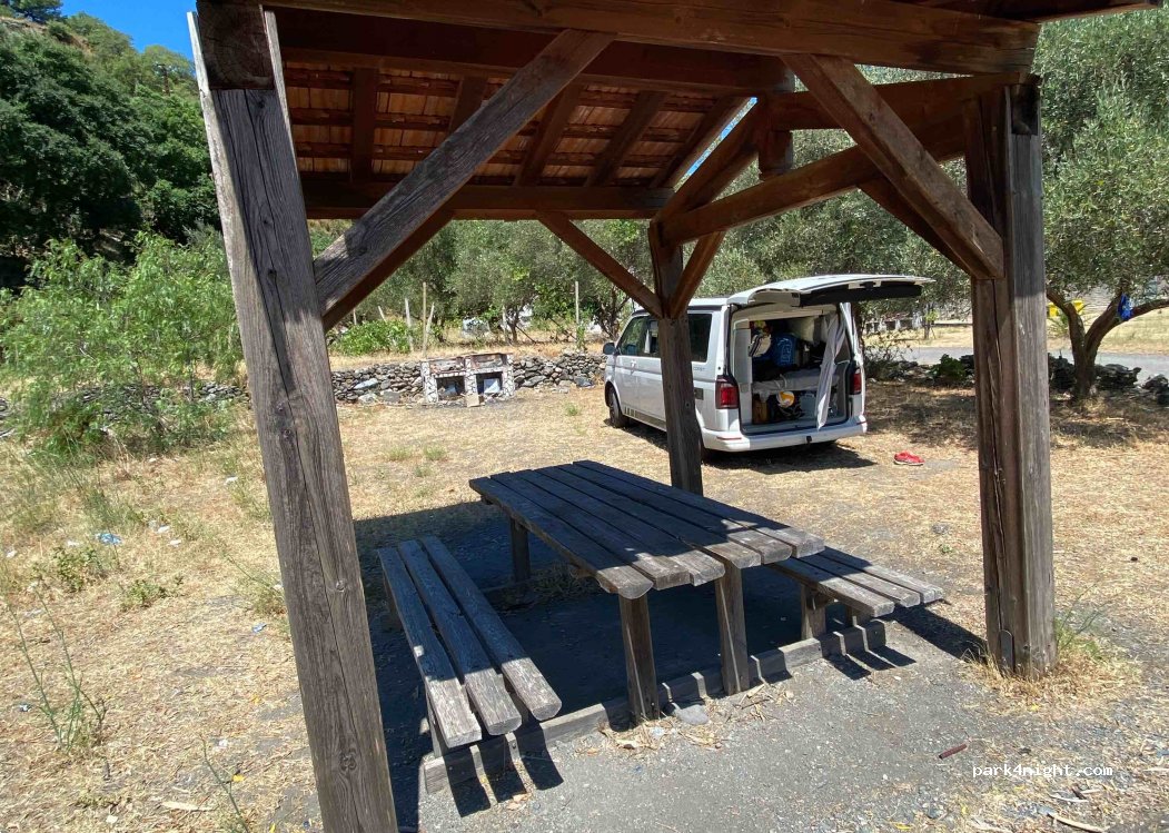 Platz mitten in der Natur. In der Nähe einer Kapelle, die renoviert wird…. Großer Picknickplatz mit Tischen und Bänken + Außengrills. Große Ruhe. Tolle Zeit mitten im Nirgendwo.