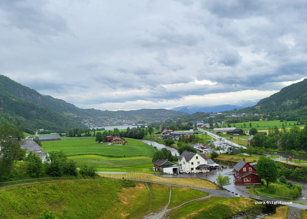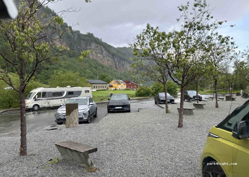 Zweckmäßiger Parkplatz für die Fahrt Richtung Bergen. Viele Stellplätze, Toiletten und Müllentsorgung. Schöner Wasserfall, mehr aber auch nicht. Morgens kommen extrem viele Touribusse, wir sind schnell weitergefahren.