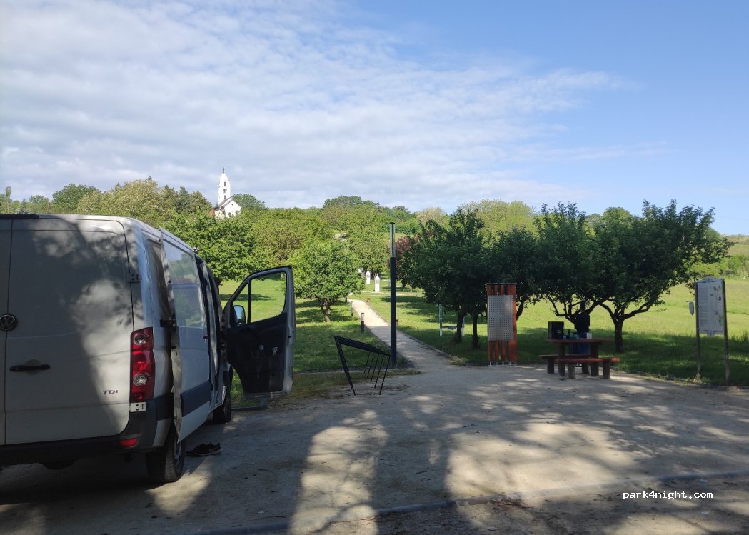 Urokliwe miejsce oświetlone w nocy. Do centrum miasta i jeziora można dojechać rowerami lub iść na pieszo. W pobliżu bardzo dobra restauracja Teri mama vendéglője. W ciągu dnia miejsce jest jednak często odwiedzane przez ludzi z psami. W nocy cisza, spokój. Spędziliśmy tu jedną noc, polecamy.