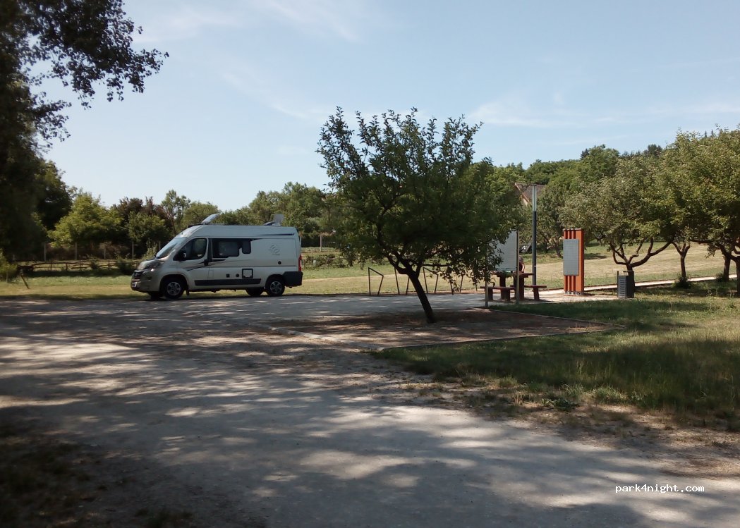 Nous y avons passé 2 nuits au calme. Quelques promeneurs ou joggeurs le matin mais pas dérangeants. Nous sommes allés au lac thermal en vélo et ça se fait très bien (2,5km), même notre petite de 5 ans l’a fait sans problème sur son vélo.