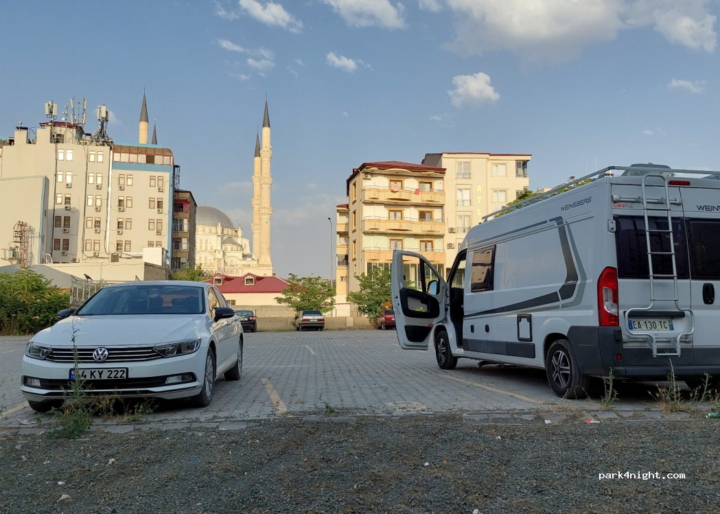 Perfekt gelegener Parkplatz, abends die Stadt voller Menschen und richtig was los. Trotzdem eine komplett ruhige Nacht, außer einem Hahn hat man nichts gehört. Das alles für 50TL pro Nacht inkl. extrem netten Sicherheitsdienst.