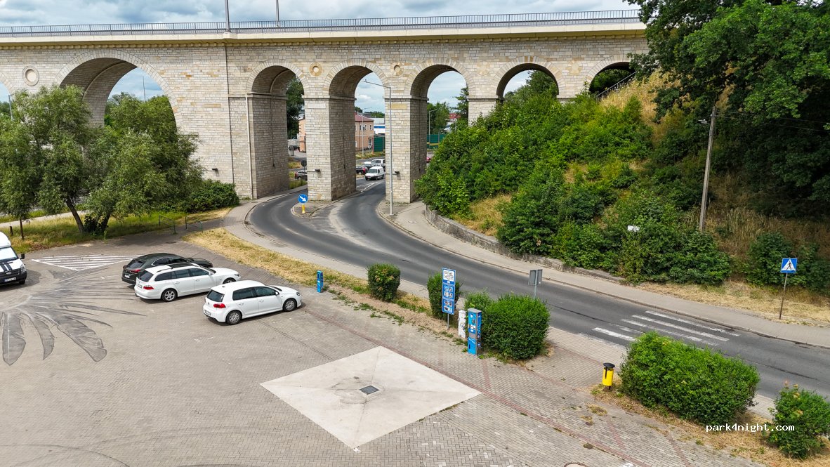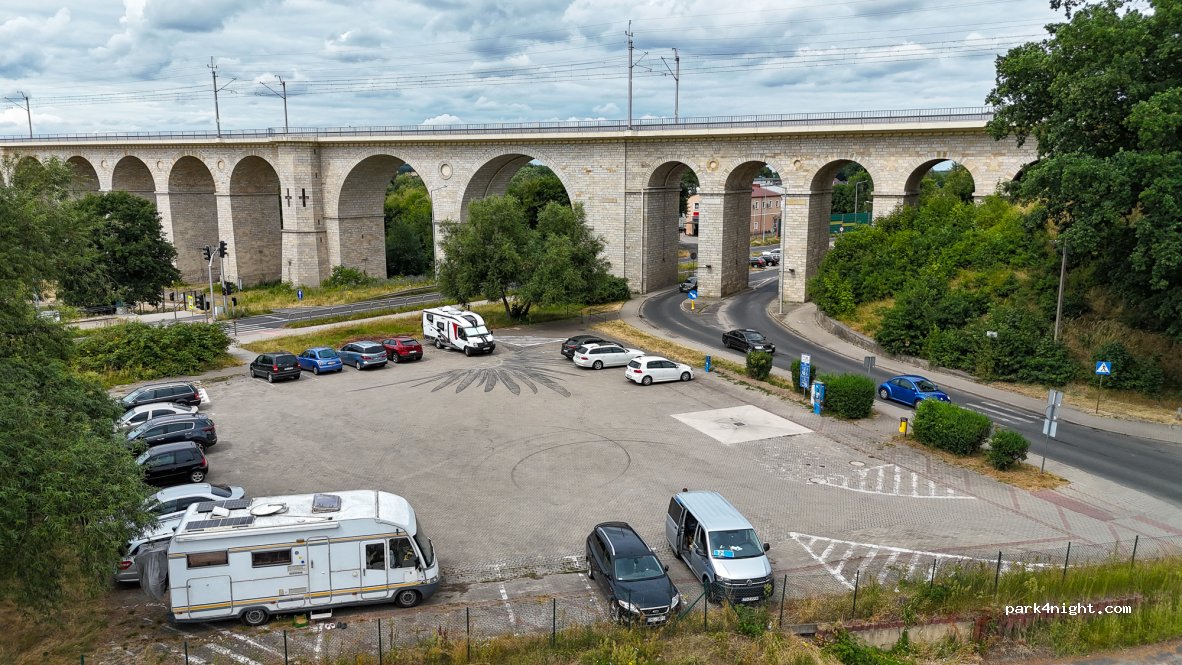 Darmowy, utwardzony parking pod pięknym wiaduktem kolejowym. Płatna woda i prąd. Za ulicą ładny plac zabaw, skatepark oraz boiska do siatkówki. Spacerem ok. 10 minut do rynku. W nocy, jeżeli komuś nie przeszkadza co jakiś czas przejeżdżający pociąg to parking godny polecenia.