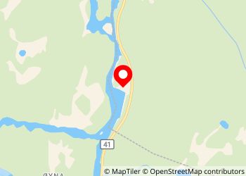 Bel endroit près de la route, entouré de forêt et d'une rivière.