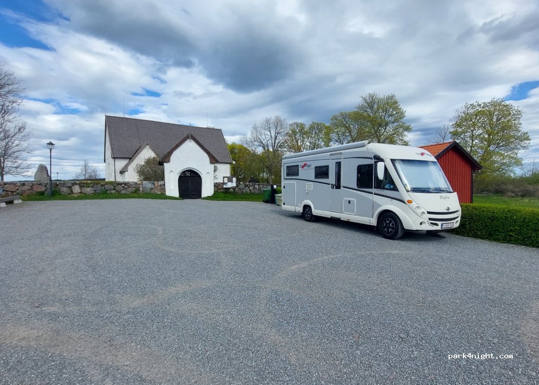 Toller großer Schotterparkplatz, man kann auch ohne Unterlegkeile gerade stehen. Kirche & Friedhof nebenan. Sehr ruhige & idyllische Gegend. Es gibt sogar eine beheitzte Toilette (auch für Behinderte) mit Wickeltisch. Für eine Übernachtung echt genial.
