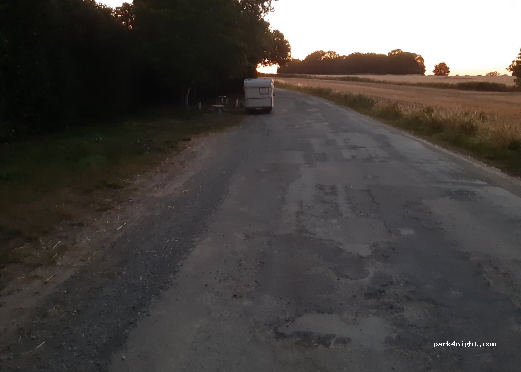1/2 rest area with tables, 1/2 separated with trees Collection point for bottles and cans, quiet place protected from the street with trees, 2 tables, with a very large sign not to leave rubbish there