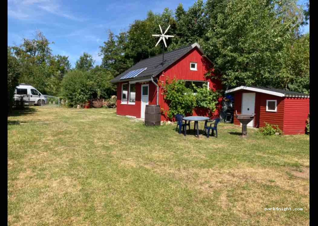 Belle place de parking sur propriété privée. 50m de la zone de baignade. Uniquement pour les camping-cars autonomes. Canoë possible gratuitement. Table, chaises et barbecue à disposition. Piste cyclable jusqu'à Schwerin. S'il vous plaît seulement après inscription préalable.