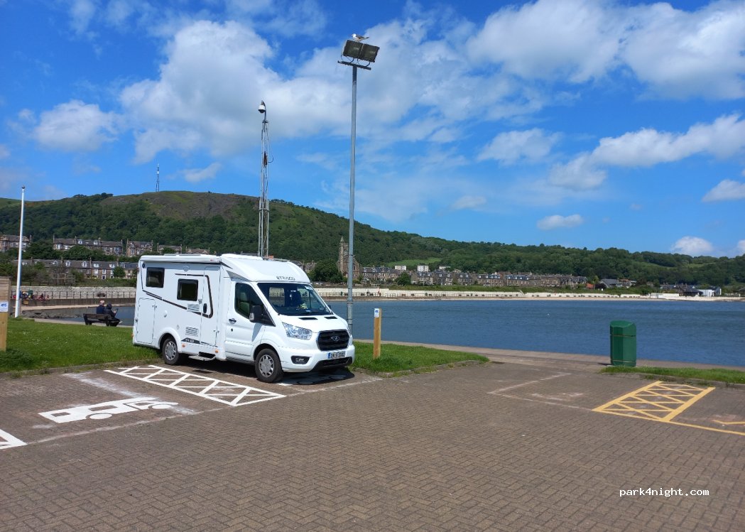 Smashing park up. Allocated spaces for motorhomes, just don’t turn up at 17:45 on a Saturday night & expect one of the larger spaces to still be free, like one couple. Great sea views. £5 in Honesty Box - make sure you pay to keep this fab place, so many whinge that there’s not enough of this type of place in the UK. Thank you Burntisland.