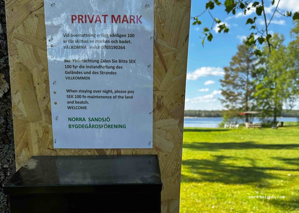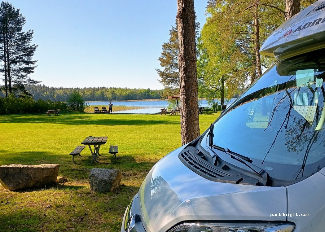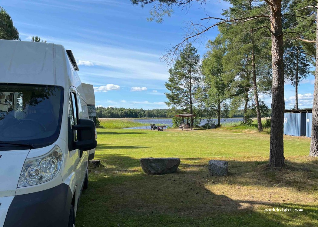 Toller Parkplatz direkt an einer Badestelle an einem See. Schöne Aussicht und gepflegte Umgebung. Kostet nur 100 SEK, die entweder in bar in einen Briefkasten oder per Swish bezahlt werden sollen. Leider kein Paypal oder Zahlung per Kreditkarte. Man hört die Autos und vor allem LKWs von der Straße leider schon etwas.