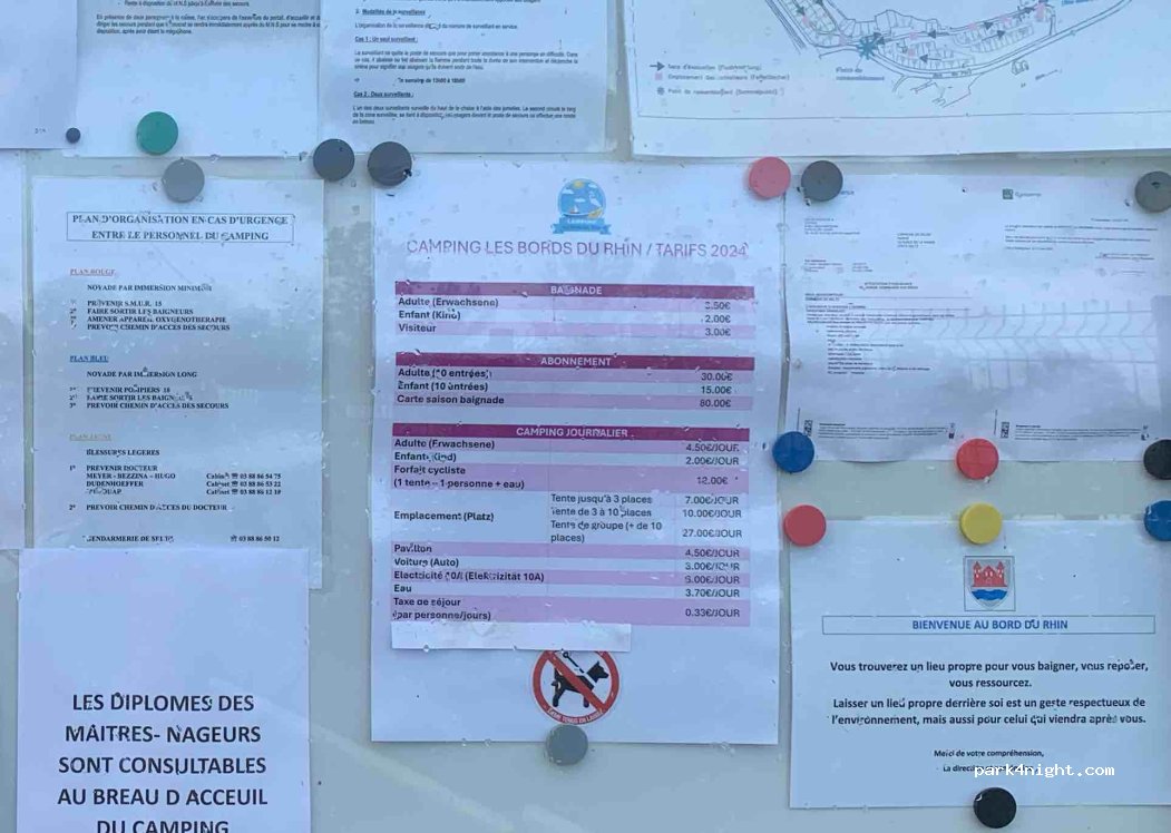 Mooie plek. Eenvoudige Camping Municipal. Aan de Rijn. Zwemmen in meer met zandstrand op de camping. Op grens van Frankrijk en Duitsland. Vanuit Duitsland gratis pont. Let op: Pont Max 220 cm hoogte en 3,5 T. In de avond veel muggen. Geen honden toegestaan. Sanitair verouderd. Wij betaalden met buscamper en 2 personen inclusief stroom ( verplicht) in het hoogseizoen €31,-.