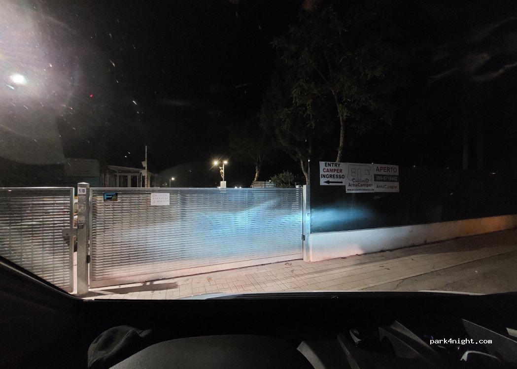 Buona area sosta. Gestori cordiali. Camper service completo ma potrebbe essere dislocato in posizione migliore. Essendo inverno i bagni dovrebbero essere riscaldati ma purtroppo non lo sono. A 10 minuti a piedi dalla spiaggia e a una 20 di minuti a piedi dal centro. Piazzole agevoli, le colonnine d'acqua nelle vicinanze delle stesse erano chiuse. Pizzeria fronte ingresso. Abbastanza consigliata.