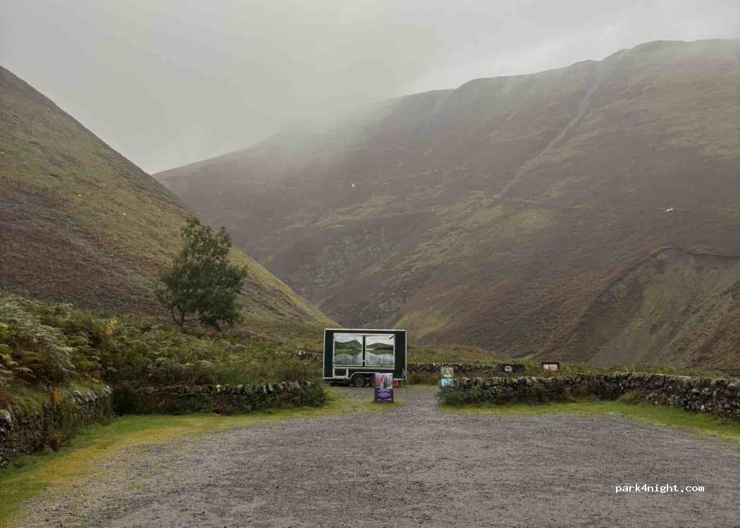 Good place to stop for a night. No toilet, however there is a bin. A bit out of the way from anything really but a nice walk up to the lake. There is a £3 charge but from reading other reviews it looks like the machine is often broken. There were 2 other vans when we got there, however the next morning the car park was full with people going walking to the lake so don’t arrive too early.