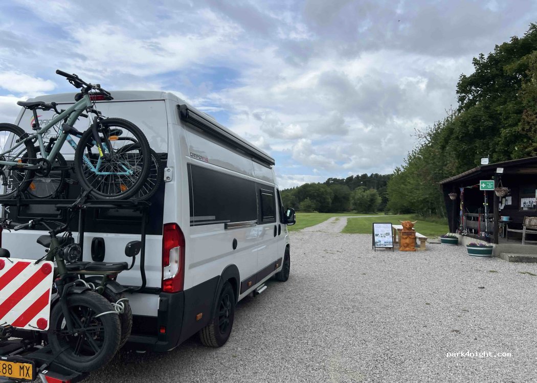 Adorable !!! Il n'y avait plus de place et pourtant la dame nous a proposé malgré tout une petite place près de la réception pour nous brancher à l'électricité pour la nuit. Nous avons même pu aller remplir le réservoir d'eau et vider eaux grises et WC chimiques avant de nous poser en face du petit lac à côté de la réception. 20 £ pour la nuit vraiment super coin! Nous recommandons absolument !