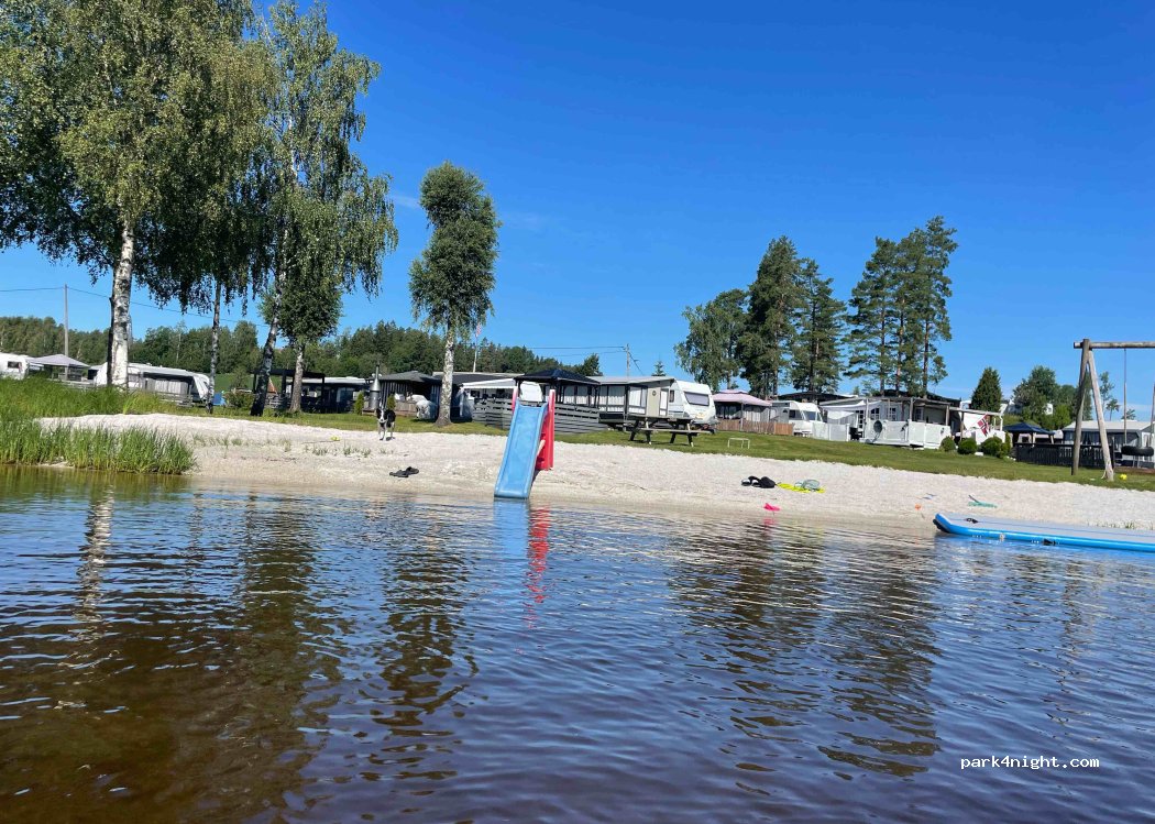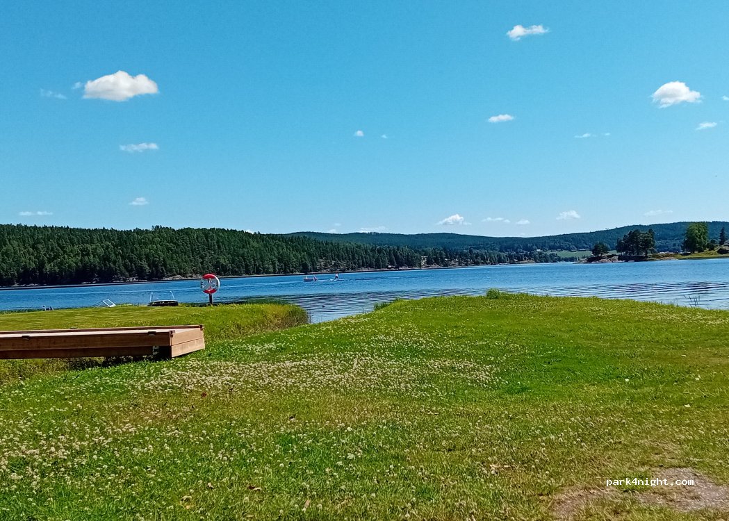 Beau camping juste au bord du lac. Presque uniquement des campeurs permanents mais aussi 3-5 emplacements directement sur le lac. Calme absolu. Avec sa propre petite plage. 300 NOK avec électricité pour van et 1 personne. Si idéalement situé, je reviendrais sans hésiter.