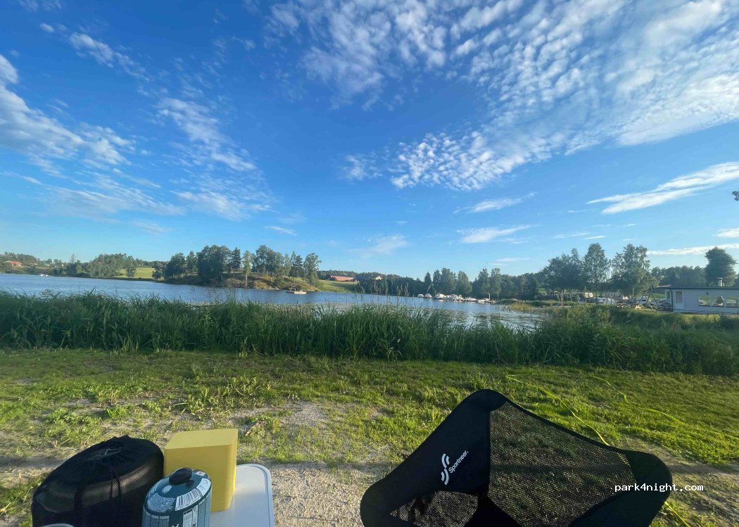 Beautiful campsite right on the lake. Almost only permanent campers but also 3-5 pitches directly on the lake. Absolute calm. With its own small beach. 300 NOK with electricity for van and 1 person. So idyllically situated, I would come back in a heartbeat.