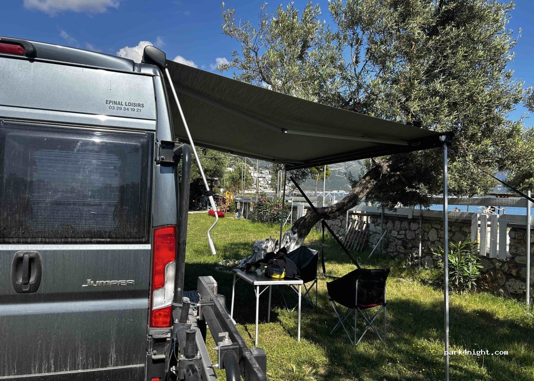 Wat een prachtig plekje!! Je staat tussen de olijfbomen, direct aan de wandelpromenade aan zee. Beter dan dit wordt het niet! We betaalden €15 in het laagseizoen. Dit is één van de weinige campings die open is in deze regio nu (midden maart). Heerlijk warme en schone douches en toiletten. Vanuit hier kun je een mooie wandeling maken naar het oude Qeparo (check Komoot). Aanrader!