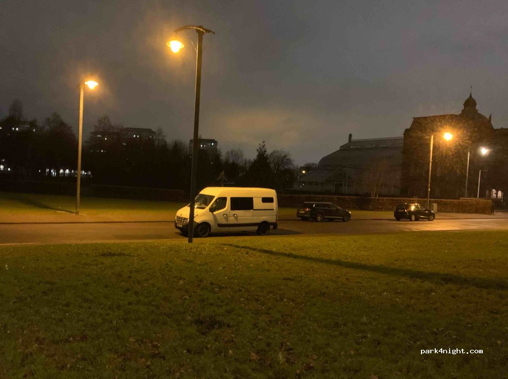 Location right next to the people's palace and the large Glasgow green park. Very quiet night, about 30 minutes from the city center on foot. Free, and we slept feeling really safe. (we were in a motorhome)
