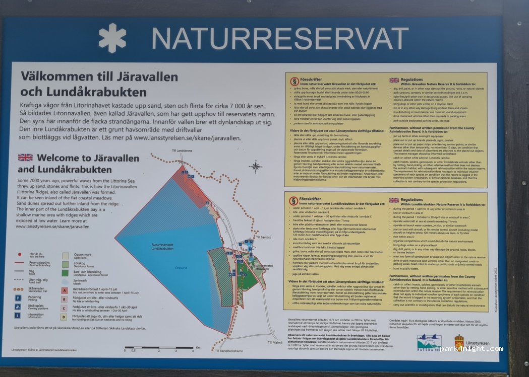 This is Järavallen recreation area and nature reserve with vulnerable wildlife and nature. Forbidden to park and camp overnight.