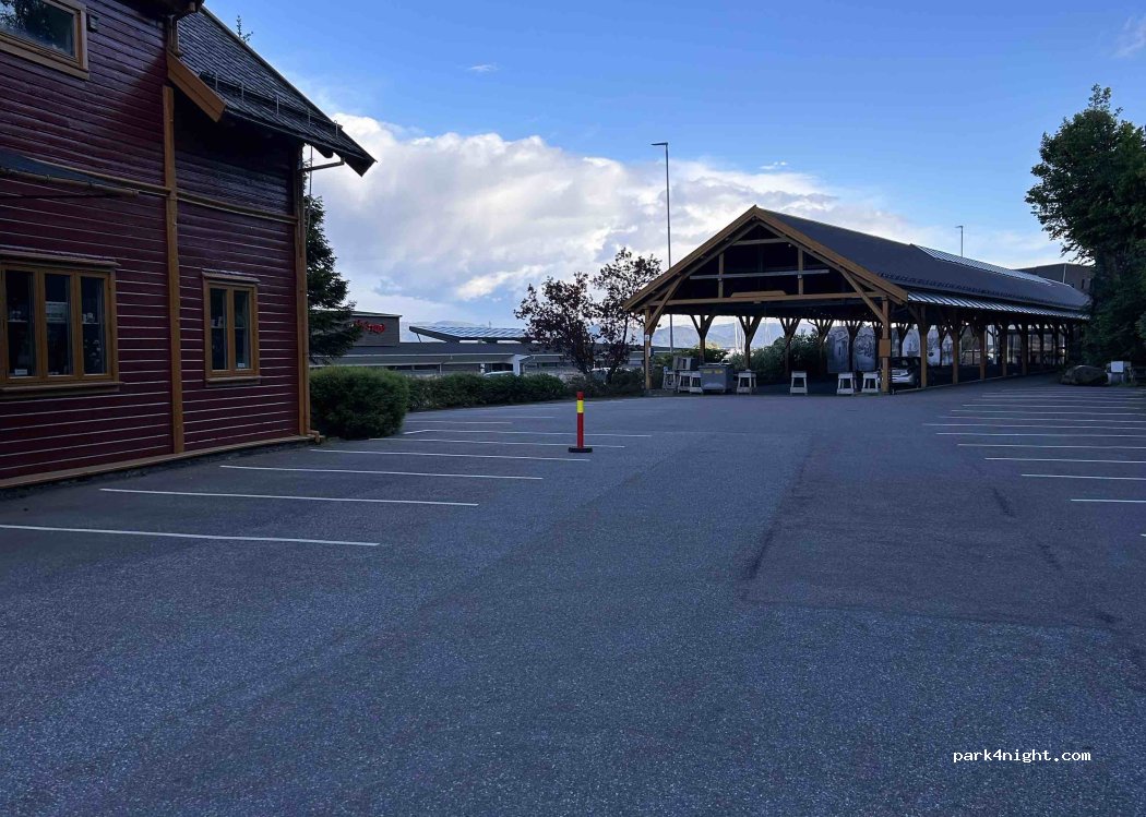 Parcheggio gratuito, abbiamo fatto 2 notti perché comodo al bus che porta a Bergen. Elettricità gratuita ma molto rumoroso soprattutto nel week-end. Strada trafficata e giovani che fanno schiamazzi.