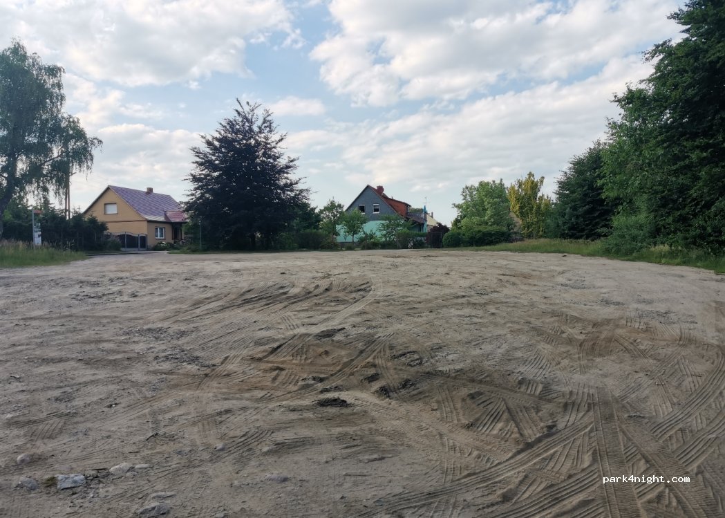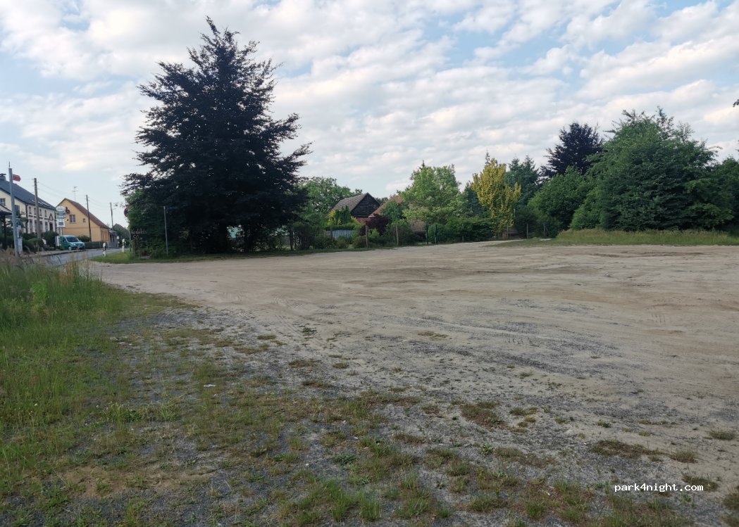 Sandiger, unebener Platz neben einer gut befahrenen Ortsstraße. Glascontainer mit Überwachungskamera am Rand, mit Müll darum herum. Uns war es nur zu offen und frequentiert, darum sind wir weitergefahren. Sonst für eine Mütze Schlaf wahrscheinlich OK.