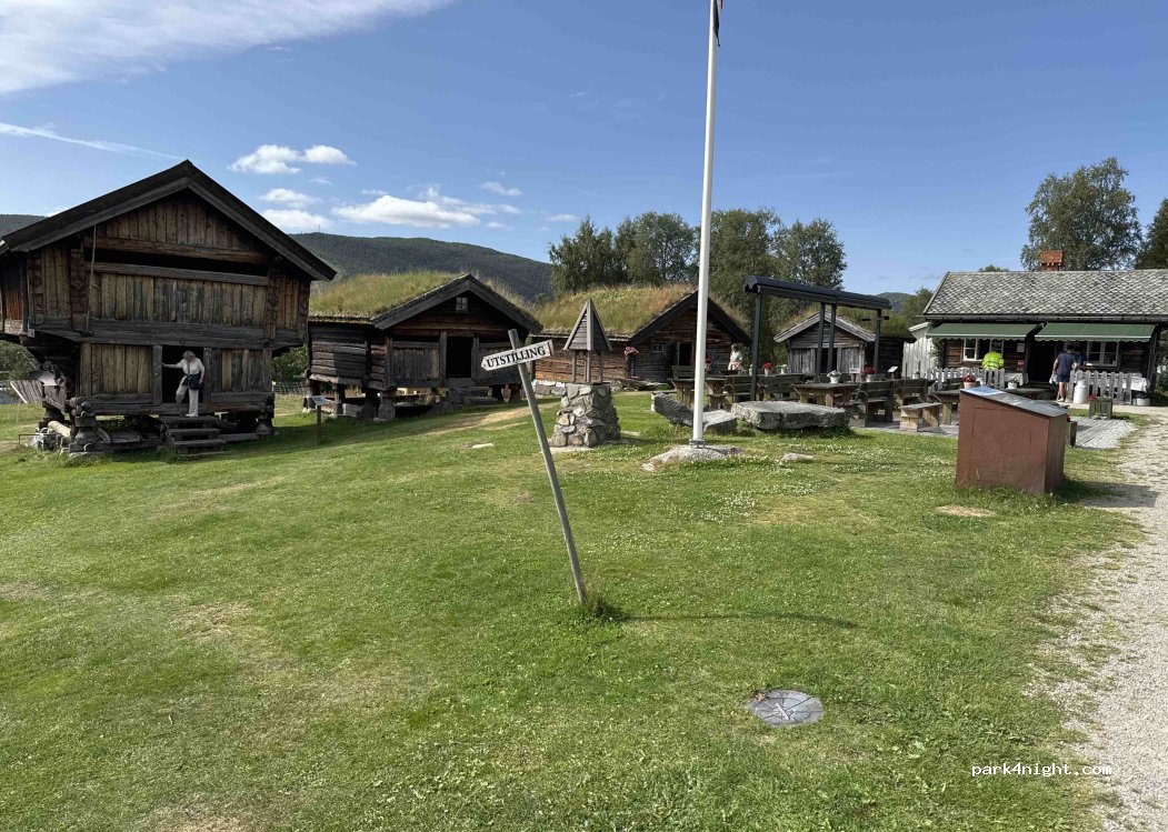Parking at Geilojordet. Great for sightseeing. There are toilets in the Open Air Museum when it is open. Entry is free. There is seating and waste paper baskets in the parking lot. We only stood here during the day.