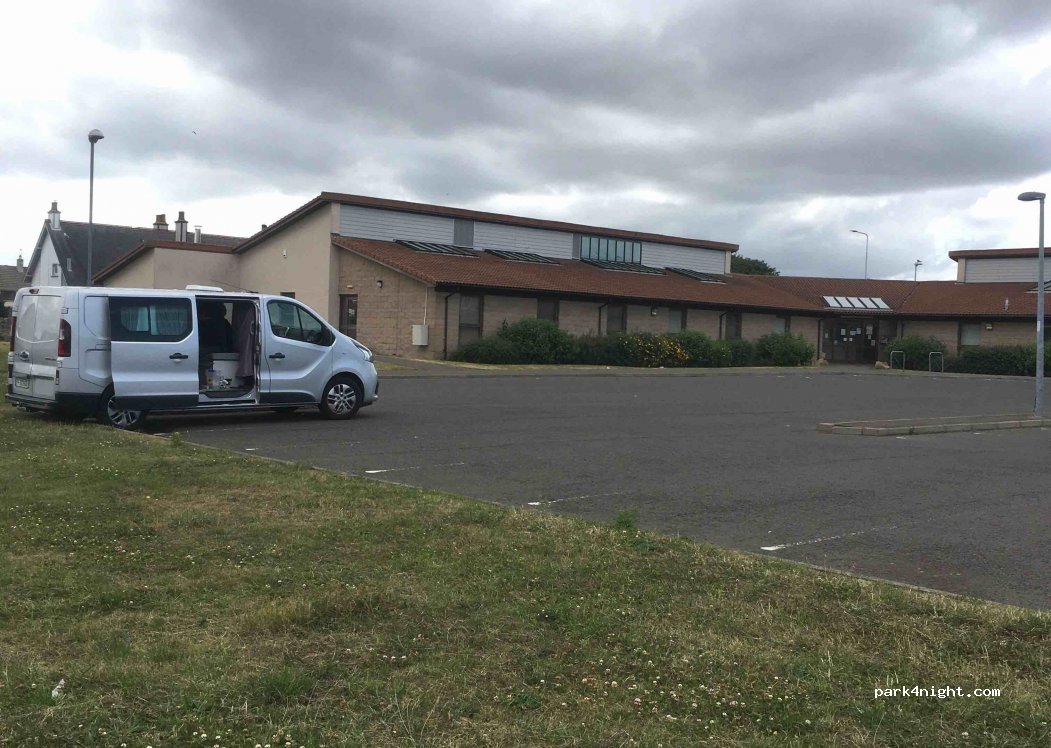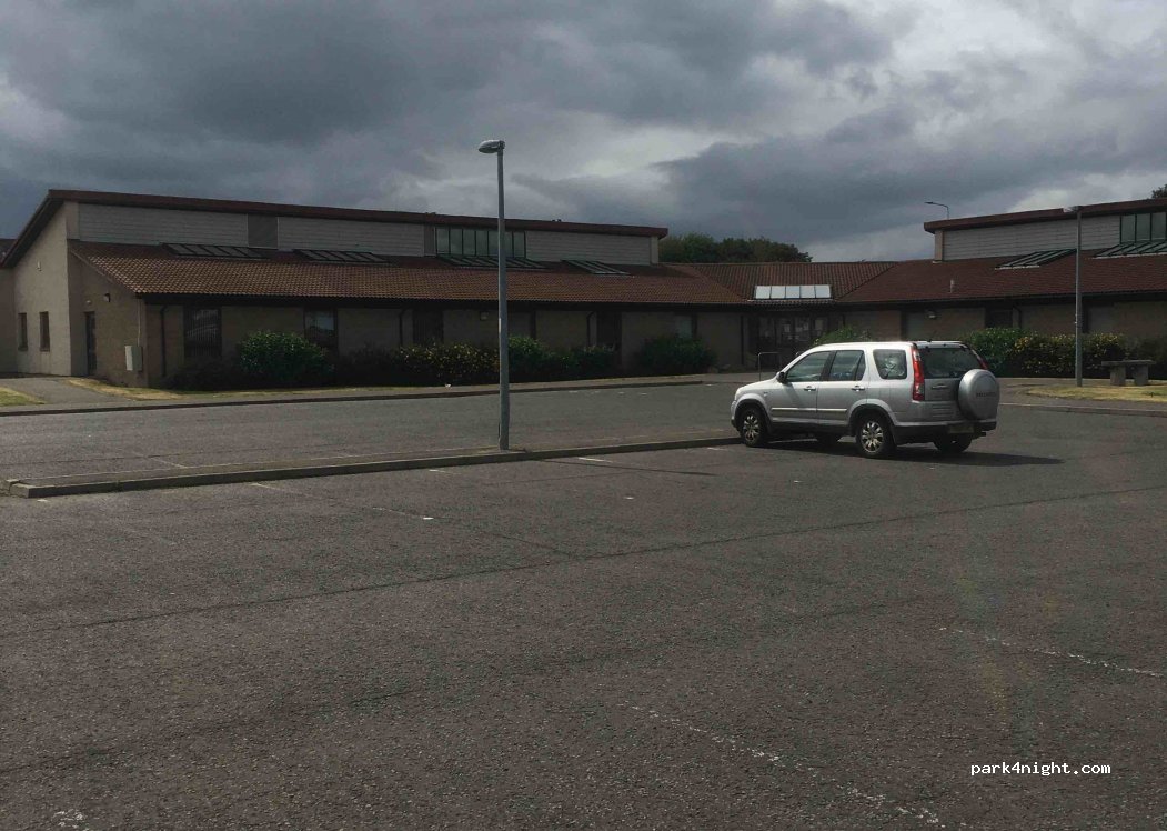 Large parking lot of a medical center. We slept there over the weekend, there was only us in this car park, there is plenty of room, the place is very quiet.