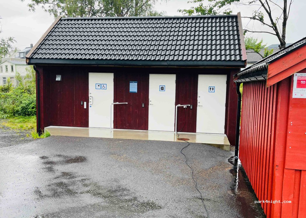 Sehr saubere Sanitäranlagen (wie neu gebaut). Heißwasserdusche, Waschmaschine, Trockner und VE im Preis inbegriffen. Kostenloses Stadt-WLAN. Sind heute die einzigen vor Ort. Ideal um nach dem Strandbesuch (7km) zu duschen und nächtigen. Einfach alles per QR-Code und dann Zugangs-Code aufs Handy. Kredikartenzahlung möglich oder über Vipps!!! App in Deutsch, aber Popup in Norwegisch, aber verstehbar
