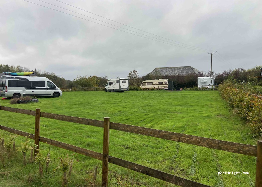 Simply perfect little spot. Handy for Dartmoor with Buckfastleigh and Ashburton nearby for supplies. A grass field and gravel car park for the winter. Slightly sloping so you may need your chocks. Occasional road noise but not an issue. Toilets and electric available. Great spot for a stop over to South West or. Base to explore Dartmoor. Dogs welcome.