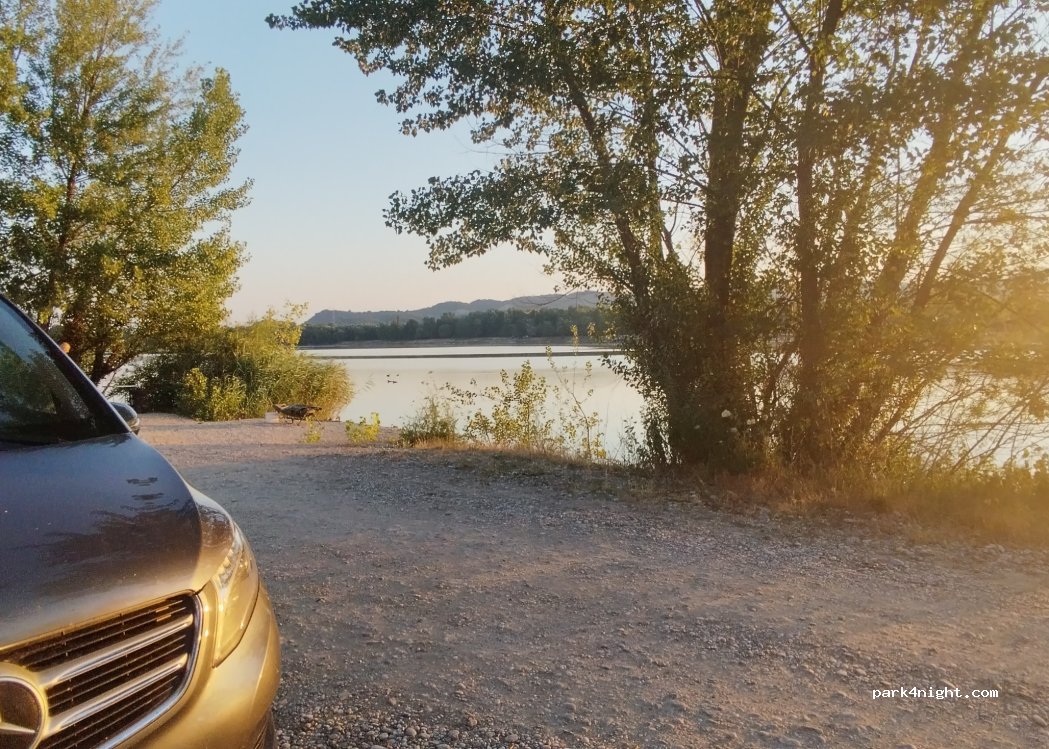 Me las arreglé para estacionar aquí alrededor de este lago de pesca. Las carreteras son de fácil acceso y hay todo tipo de bonitas playas de guijarros. El lago no es claro y muy cálido.