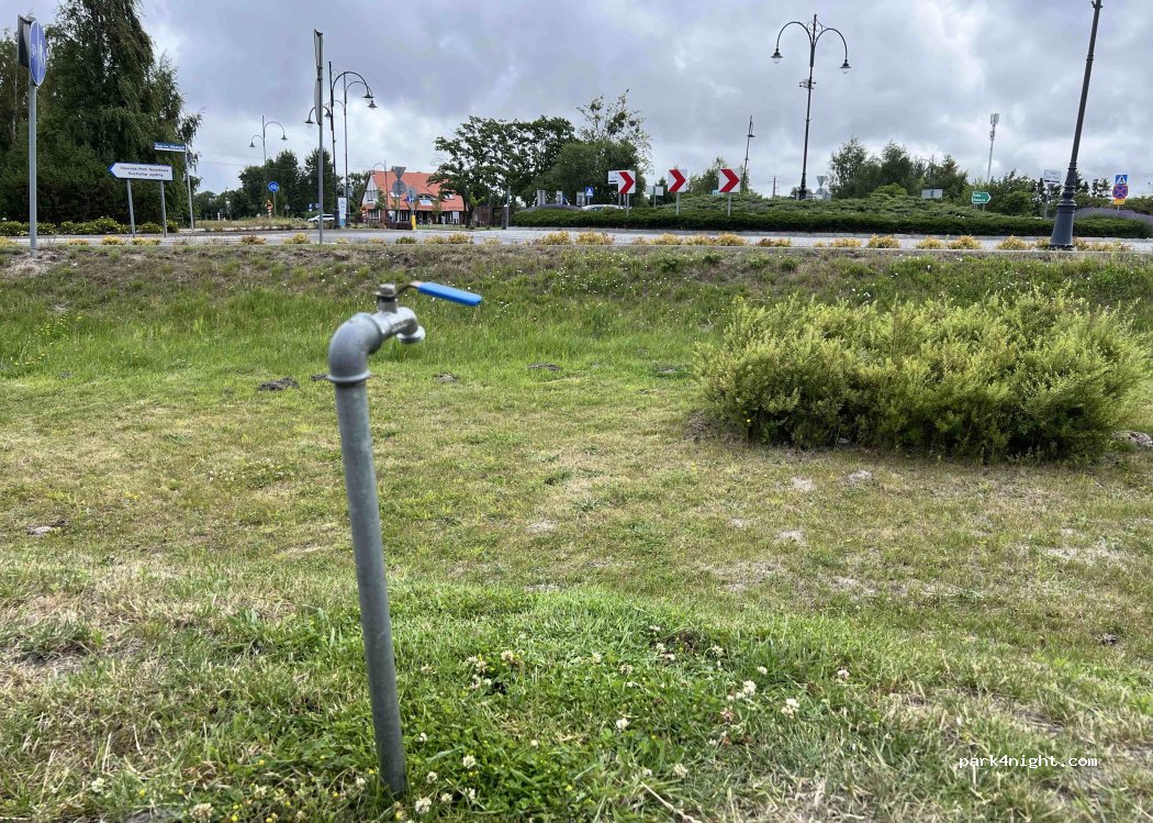 Zwei Wasserhähne befinden sich auf dem Gelände der Tankstelle, an den Seitenparkplätzen