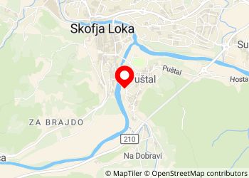 Parc Puštal Škofja Loka, sur la côte de la rivière Sora. Le café est malheureusement fermé depuis la crue de 2023. La place est proche de la vieille ville, accessible à pied. Le pont piétonnier a été détruit, mais un autre pont se trouve à proximité. Il y a une petite épicerie sur le chemin de la vieille ville.
