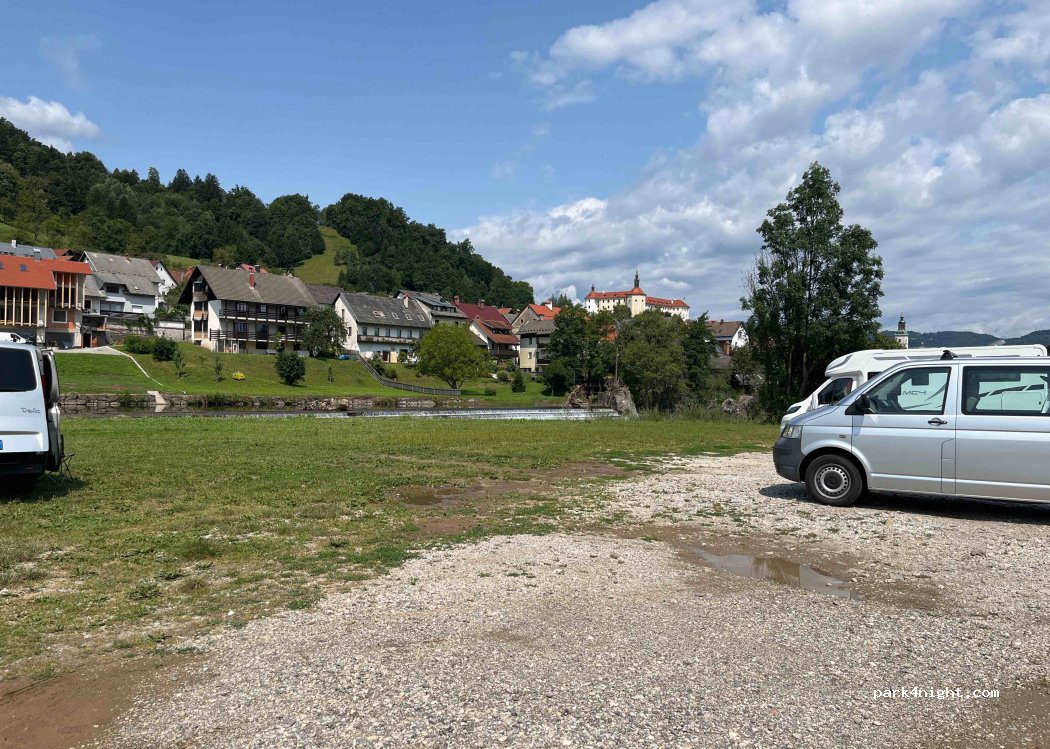 Super Ort zum schlafen und als Ausgangspunkt für Skofja Loka. Wir waren 2 Nächte dort. Keine Polizei, keinen Ärger. Die Menschen in der Bar sind sehr freundlich und es ist möglich das WC zu benutzen. Geht mal alle ein Bier trinken dort.
