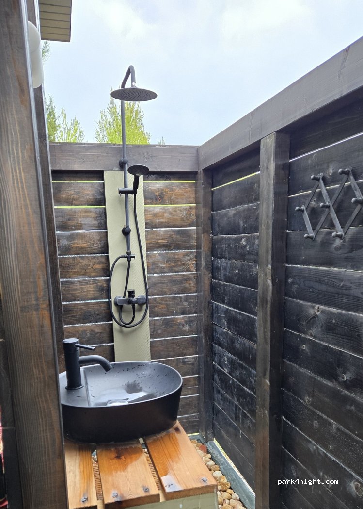 Great place. You get some luxury time of the camper and a nice hot shower (if the sun is there) we were a little unlucky with some bad weather but it didn’t affect the rating. Great place just to chill.