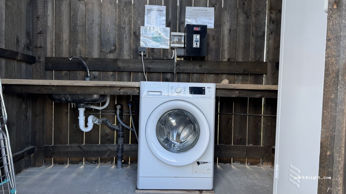 Praktischer Servicebereich für Wohnmobile mit Entsorgung von Grau- und Schwarzwasser sowie Frischwasseranschluss. Außerdem gibt es einen Sanitärraum mit Waschmaschine (Münzbetrieb) und Gemeinschaftskühlschrank. Kostenloses WLAN.