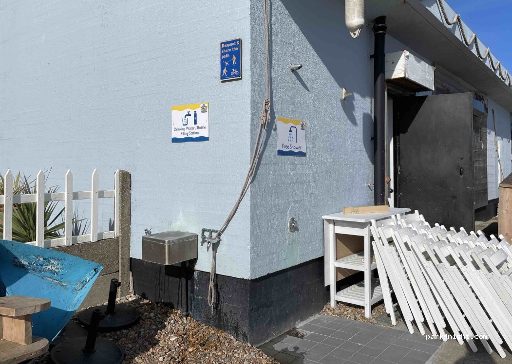 Flat parking but literally in front of people’s house. The beach does not allow dogs, and the shower is a beach shower, not a cubicle. If you are only using the services, free on-street parking is available closer to the toilets (2hrs max).
