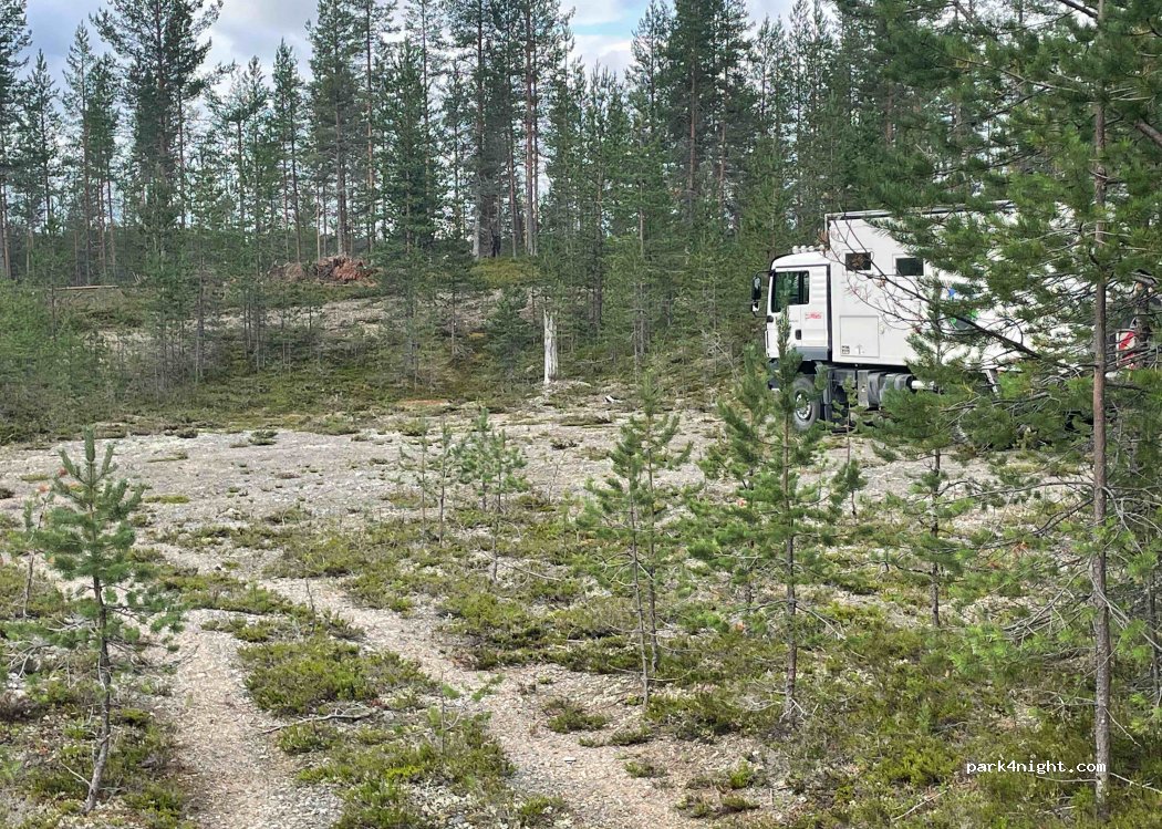 Große Freifläche bei einer Schotterstraße zum Julma-Ölkky. Mehrere Stellmöglichkeiten, teilweise für 4x4. Sand und Kies. Von Wald umgeben. 300 m zu einem See. In der Nacht absolut ruhig, tagsüber etwas Verkehr, aber je nach Platz kaum wahrzunehmen. Je nach Fahrzeughöhe und und auf dem markierten Platz nicht einsehbar. Wenig Schattenplätze.