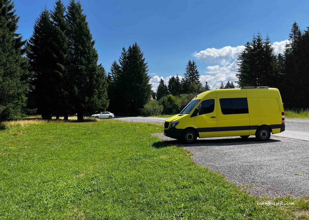 Very easy spot - there are twelve big parking spaces - some with access to electricity - and gorgeous short hikes & a decent mountain restaurant just minutes away. It was very quiet at night. We had no issues with the drive up in a 6.6 metre length 5.5 ton camper. Reto came by to welcome us and to make sure we had everything we needed.
