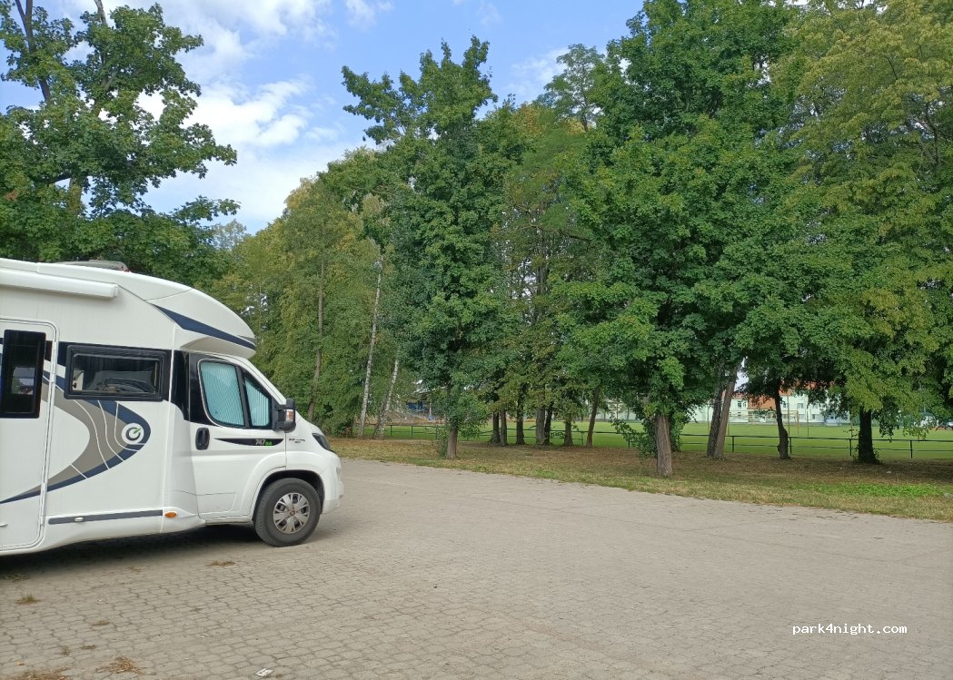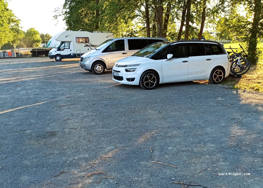 Large parking area. There were some guys talking quite loudly in the evening, but it was not that bad. Great location for visiting the city and exploring the surroundings.