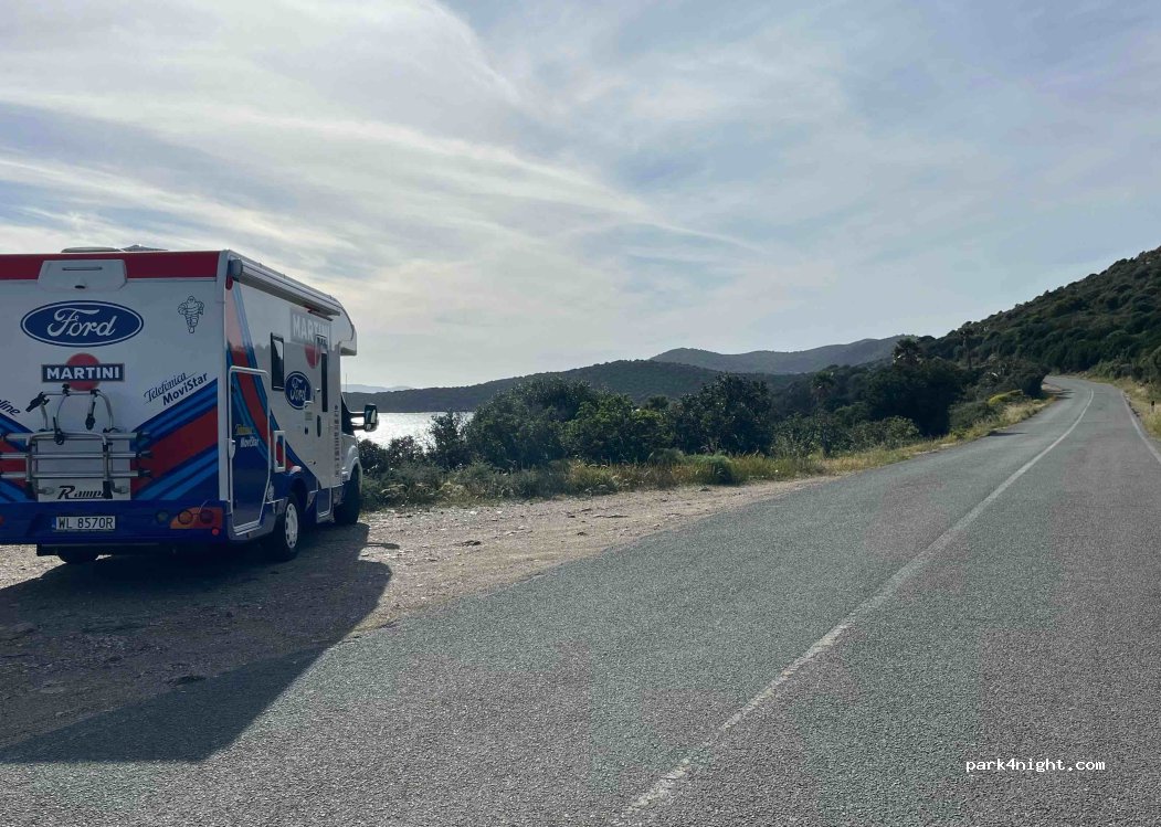 Parking sur terrain juste à côté de la route, nous avons dormi pour aller à la plage de tuerrdda qui est toute proche, et qui plus près il est impossible de dormir. Environ 10 à 12 campeurs entreront.Nous avons passé une nuit tranquille avec un ticket de voiture.