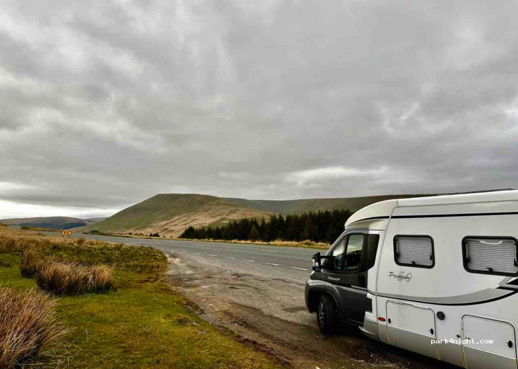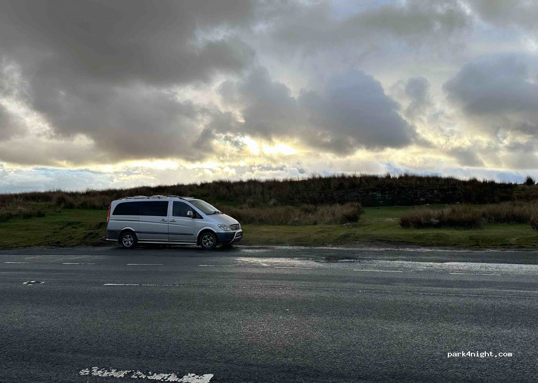 Stopped here for one night on New Year’s Eve 2025. Very picturesque spot, lay-by is wide so you’re not right on the road. Shame to see litter left by others, but otherwise a nice place to be, lots of open space to take the dog out too. Warden came and gave us a knock at around 930 in the morning asking us to move on and let us know we shouldn’t have stayed but was polite about it.