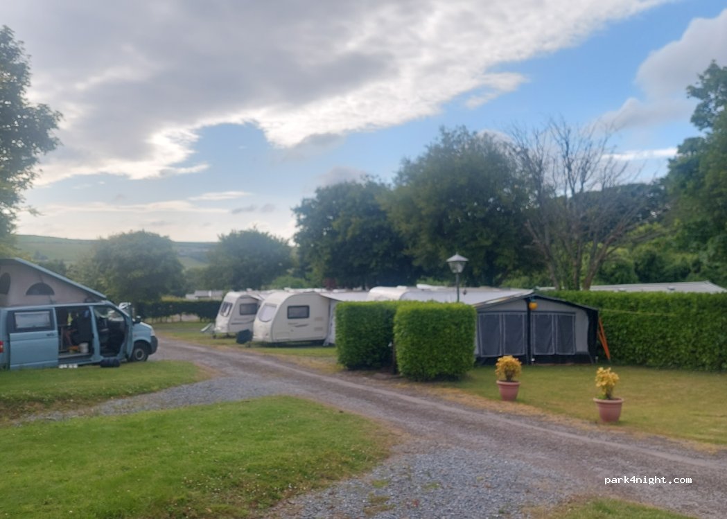 park with its own toilet. Quiet with great views. Owners are very helpful and there is an onsite shop and lots of indoor areas. Short walk to two lovely beaches.