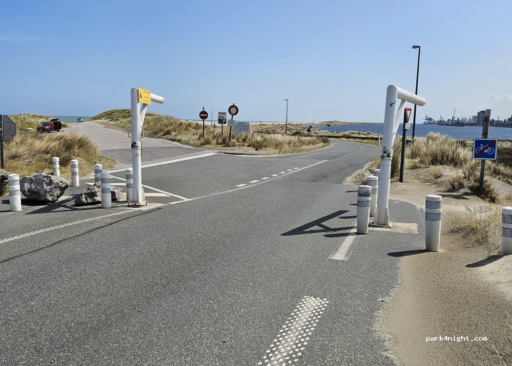 The police visit this area looking for asylum seekers going on boats to the uk. nothing to do with camping. All along here is all one place really with some dunes at beginning and end. I parked half way along and saw no police, no asylum seekers, no rubbish and smelt no smells, bit noise from industry.. No crowds, only fishermen and some beach people. Excellent