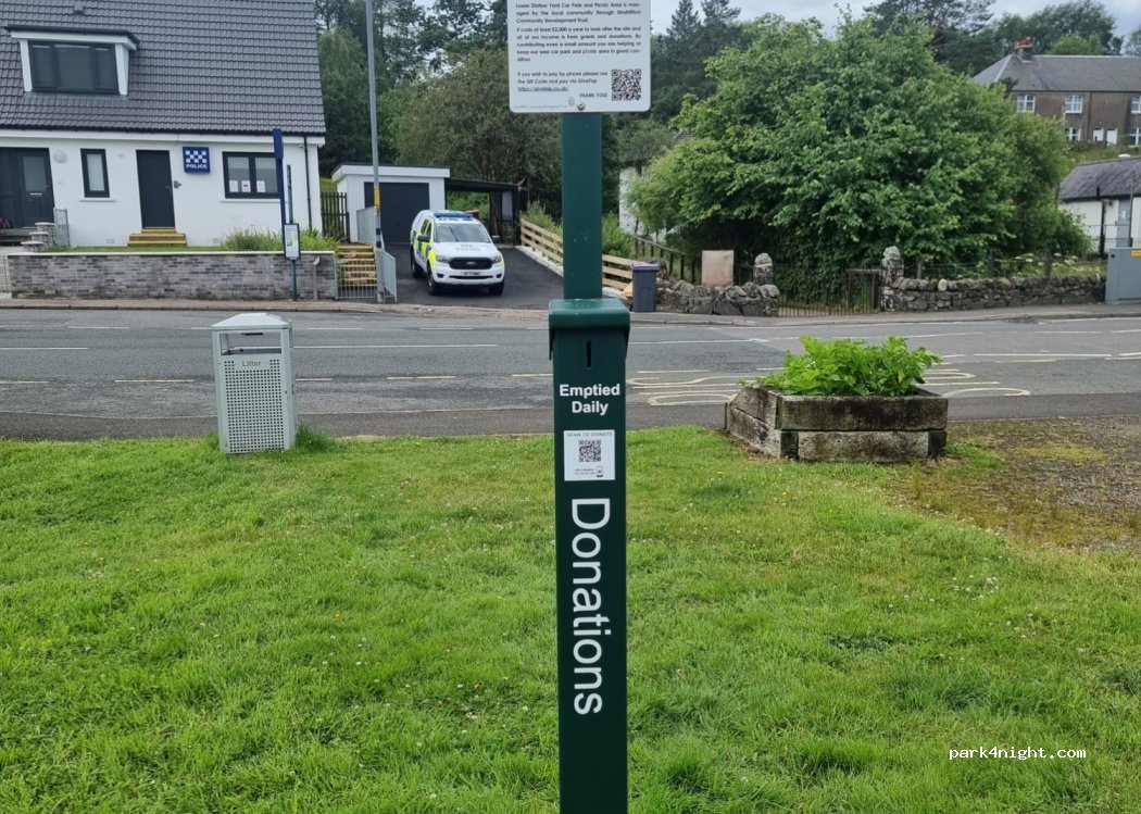 Great place for a stop over. A pub over the road (Rod & Reel) does lovely food, a convenience store and a cafe at Crainlarich railway station does a great breakfast. There is a toilet at the railway station which is open in the daytime.There is an honesty box for donations towards the upkeep of the space by the local community, you can contribute with cash or there is a QR code you can use.