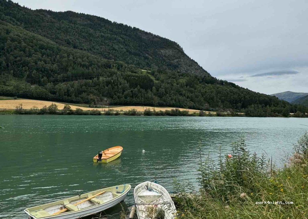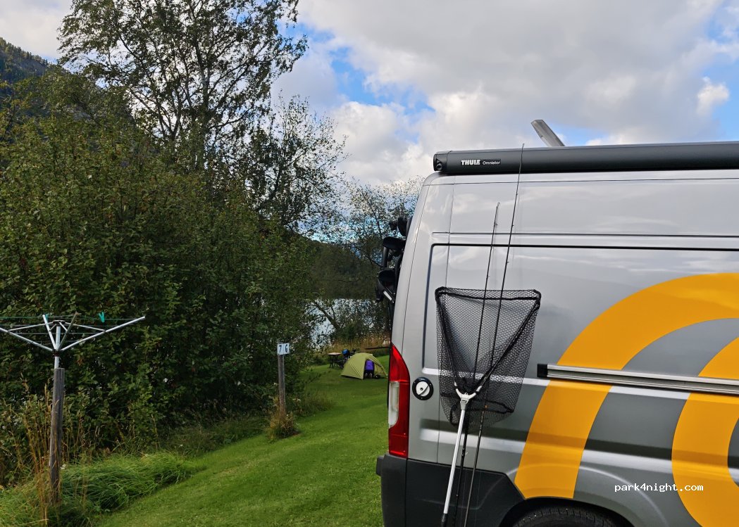 The campsite is beautifully situated by the water, but we agree with many other visitors; There is a lot of noise from the E6. We spent the other night at 'VARPHAUGEN', which is 2.5 km further towards Sjoa/Kvam. Here it is much more quiet and the camping area is much larger so you're not so squeezed in to the other campers and caravans.