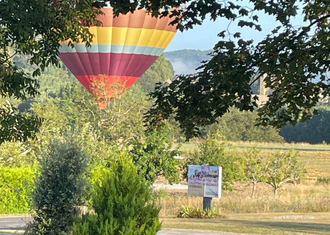 nous y sommes passés le 08/09. Nous confirmons tous ces avis très positifs. Coucher et lever avec les montgolfières. Le lendemain matin, visite à pied non planifiée depuis ce bivouac des jardins de Marqueyssac suggérée par notre hôte. Vue et jardins inoubliables...Nous ne sommes repartis qu'à 15 h direction Rocamadour.
