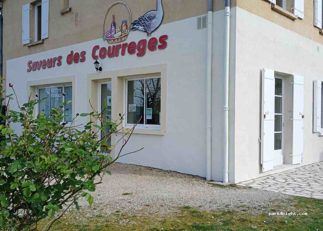 Le magasin Saveurs des Courrèges a dédié des emplacements (6 au total) aux camping-cars. Ouvert tous les jours, vous trouverez un magasin où les clients pourront se ravitailler en produits régionaux de qualité à un prix très abordable. Des gâteaux, bières, cadeaux et vin de la région. Ils pourront bien sûr y passer la nuit gratuitement. Accès facile par la RD703. Vous aurez une vue magnifique sur les Châteaux les plus prestigieux de Dordogne: Beynac, Marqueyssac, Castelnaud. En arrivant, merci de contactez Stéphane