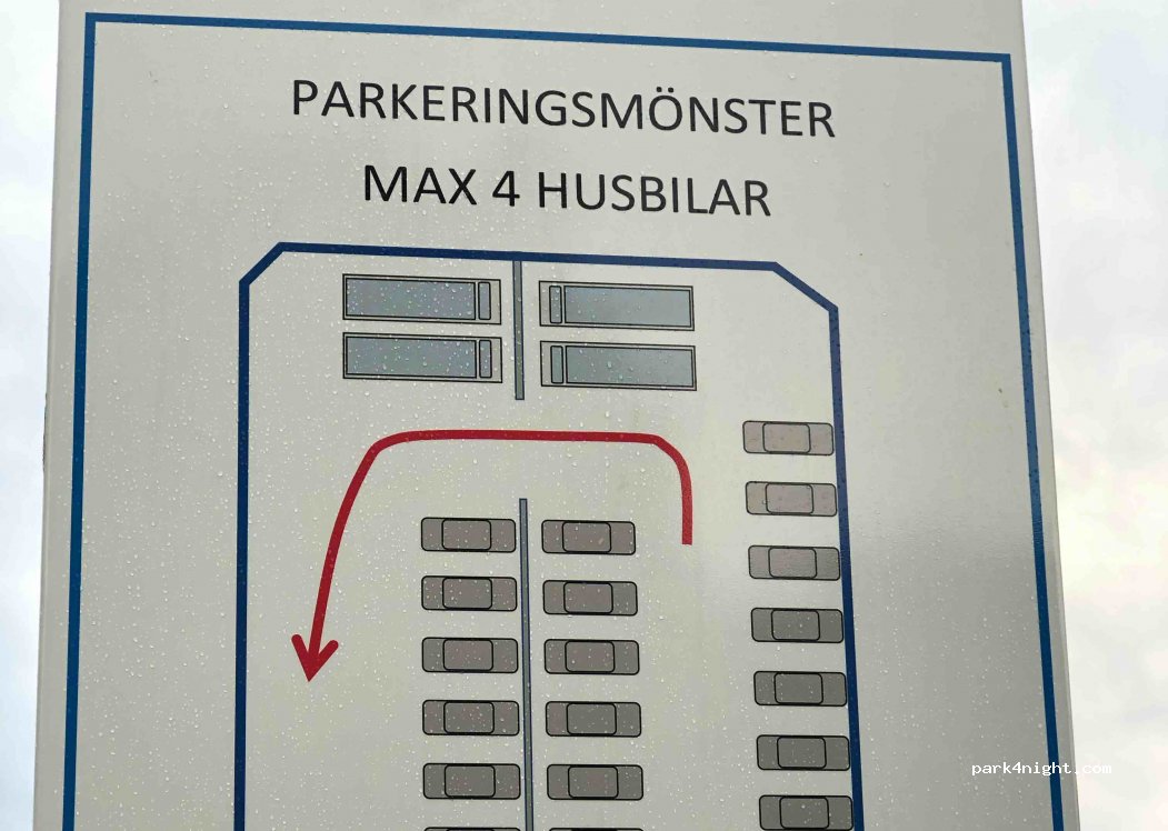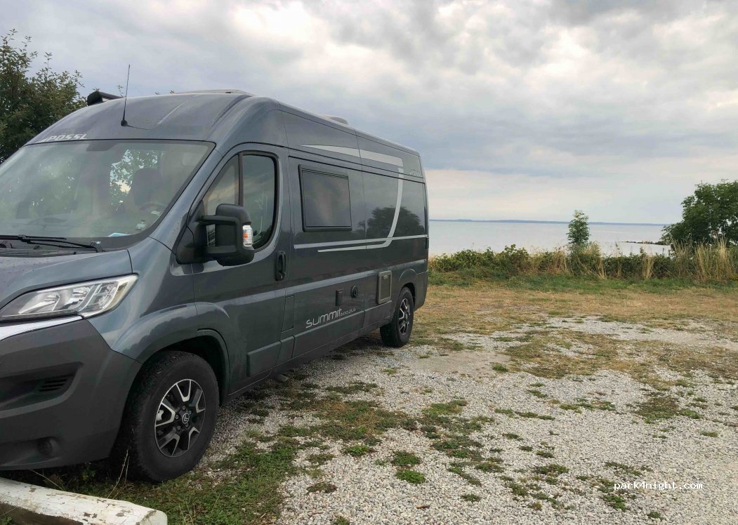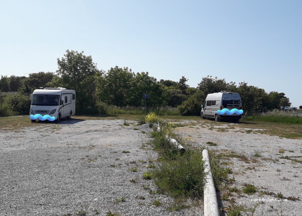 Ein Kiesparkplatz mit Sicht auf Burgsviken. Kein Schatten. Nur für autarke Fahrzeuge. Keine weiteren Einrichtungen. Es sind tagsüber Geräusche aus dem nahen Steinbruch zu hören.