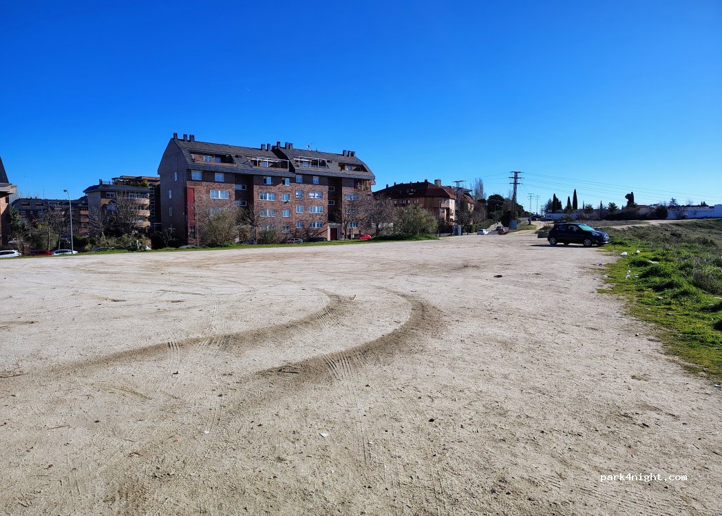 Tranquilo descampado en barrio residencial del extrarradio de Madrid. La población de aquí es de renta alta así q hay mucha tranquilidad. Hemos pasado una noche. Buenas vistas de Madrid y mucho silencio.