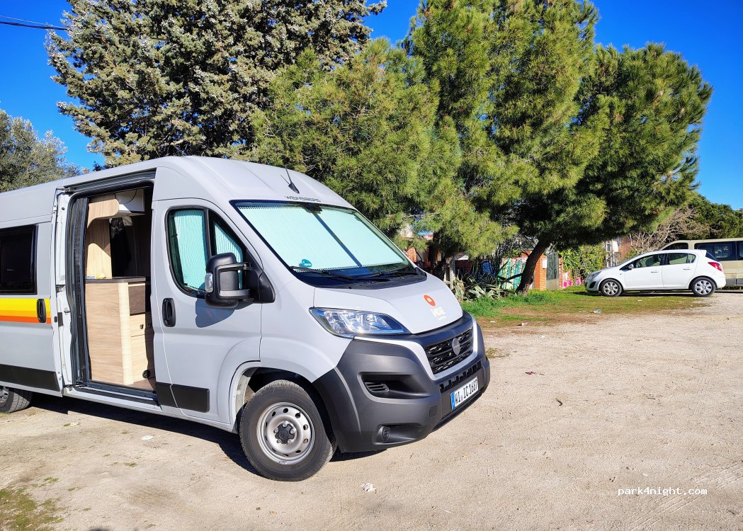 Ruhige Baulücke in einem Wohngebiet am Stadtrand von Madrid. Die Bevölkerung hier hat ein hohes Einkommen, daher herrscht hier viel Ruhe. Wir haben eine Nacht verbracht. Gute Aussicht auf Madrid und viel Stille.